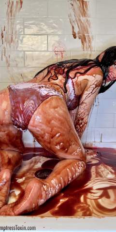 Trixxi Muddy Messy Girl rolled around with Chuck M on a tarp covered with oil