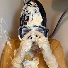 MessyMegan got a oatmeal-filled balloon busted over her head by ladieshairmessyfandude