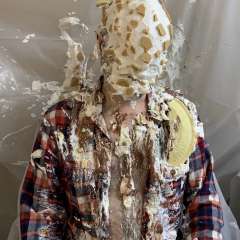 StagedStooge got a whipped cream-filled balloon busted over his head by michiganpie1